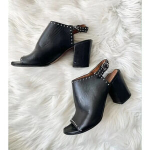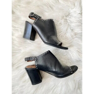 Givenchy Black Leather Studded Slingback Heels Shoes Block Heel 36.5