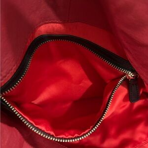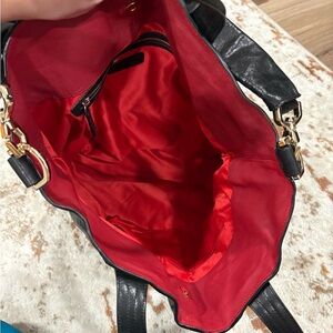 This stylish black leather tote bag is perfect for any occasion. Its sleek design and durable material make it a must-have accessory. The subtle red accent adds a touch of sophistication.