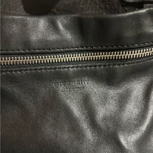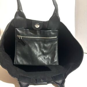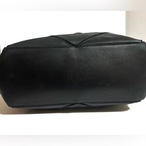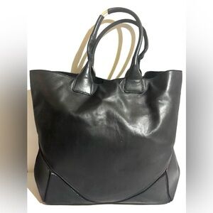Elegant and versatile black leather tote bag, perfect for any occasion. Crafted with high-quality materials for durability and style. Main compartment 1 zip pocket closure at interior wall dual shoulder straps snap closure at top lining have some stains heavy scuff throughout heavy creasing throughout moderate scratches throughout moderate residue at interior shape has relaxed due to wear broken tear handle they need to fix replaced hight 13” wide 18” depth 5.5” strap drop 9”The dimensions are based on approximately measurements before placing an order please check take a moment to view all photos using feature for a closer look