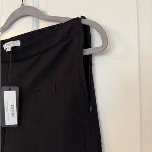Chic black leggings featuring stylish panel accents. Ideal for versatile wear. Material is stretchy (viscose, polyamide and elastane). Waist is 31.5.