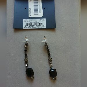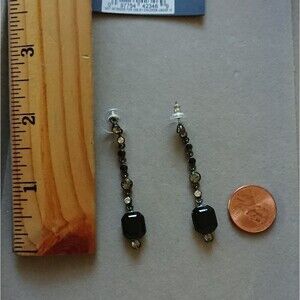 Elevate your fashion game with these stunning GIVENCHY Black Metal Clear Rhinestones Dangle Pierced Earrings.