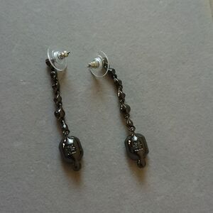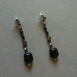 Givenchy Black Metal Clear Rhinestones Dangle Pierced Earrings