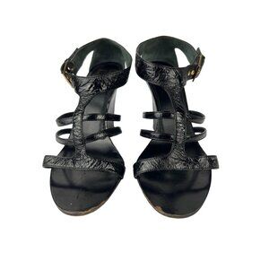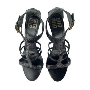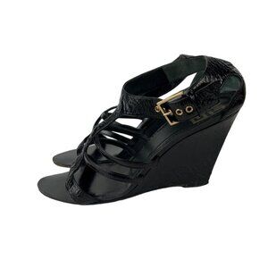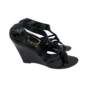 Givenchy Black Patent Crinkled Leather Open Toe Wedges size 7