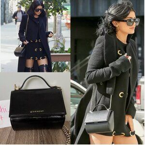 This listing is for an authentic Givenchy mini pandora in black patent leather. It has a golden-ton chain strap and a top handle so it can be carried like a vanity. The chain strap is not removable (it's ~45 inches long), but it can be tucked into the sides of the bag. It has a flap closure with a push lock and the inside has a small internal zipper. Personally love this style bag, but I don't have the social events to use it - it's time to pass her on to the next owner!