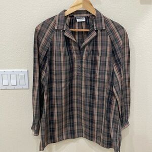 Givenchy Black/Brown/Green Plaid Blouse—Vintage—BEAUTIFUL Fabric & Colors—Great vintage condition!! Size 8