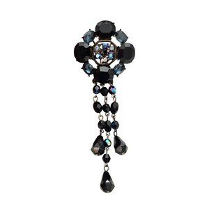 Givenchy Blue Black Rhinestone Cross Round Brooch Dangle Tassel Pin, Signed L992