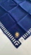 Stylish blue scarf by Givenchy. Features gold emblem and white geometric border. Ideal for chic ensembles. Brand new with no call outs. Measures about 18.5”x18.5”