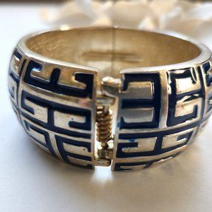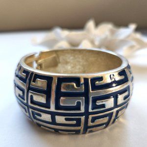 Givenchy Bracelet Blue Gold/Silver Vintage Hinged Wide Cuff 4G Retro