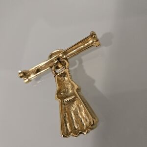 Elegant gold tone brooch featuring a tassel design. Perfect for adding a touch of sophistication to any outfit.