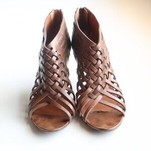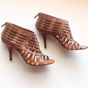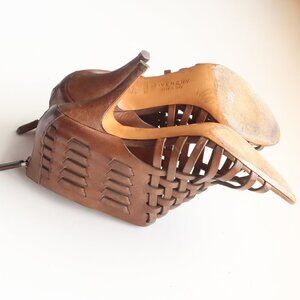 Givenchy Brown Leather Woven Strappy Open Toe Heels Sandals Luxury Bootie Shoes