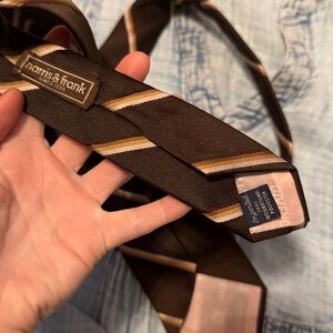 Elegant Givenchy tie with brown base. Accented by gold stripes. Perfect for formal occasions.