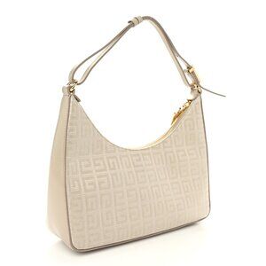 Givenchy Coated Canvas Logo 4G Embossed Moon Cut Out Shoulder Bag Natural Beige