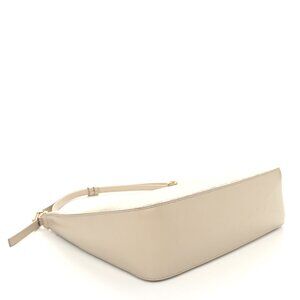 This is an authentic GIVENCHY Coated Canvas Logo 4G Embossed Small Moon Cut Out Shoulder Bag in Natural Beige. This sleek bag is crafted of luxuriously polished embossed leather in beige. The bag features an adjustable leather shoulder strap and gold hardware. The top zipper opens to a beige leather interior.