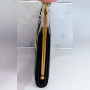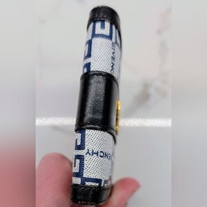 Chic Givenchy clutch with iconic logo pattern. Features black leather trim and gold hardware. Stylish and sophisticated. Preloved with minor signs of wear.