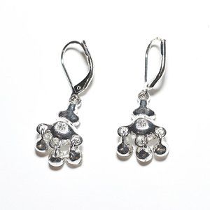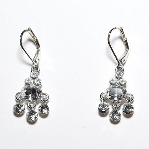 Delicate, pretty drop earrings with a cluster of crystals. The bottom three crystal move freely; the rest are one piece. Lever backs. Logo engraved on backs.