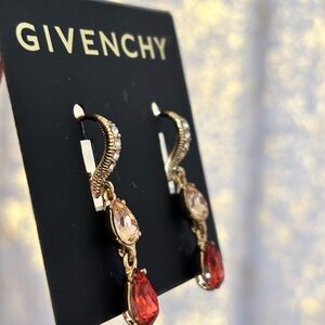 This listing is for a pair of Givenchy Crystal Double Drop Earrings! These stunning earrings are gold-tone pavé and stone double drop earrings with a leverback closure! They are the gold/red cherry color! These gorgeous earrings are brand new and come in a beautiful red box.