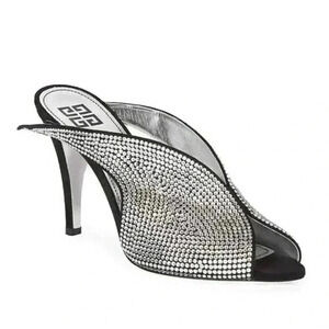 Givenchy Crystal Embellished Heel Mules Studded Sparkle Open Toe Pumps 35.5 5.5