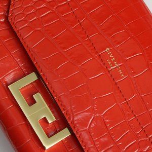 Givenchy Eden Top Handle Bag Crocodile Embossed Leather Mini Red
