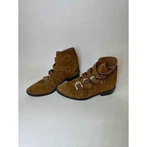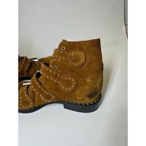 Givenchy Elegant Studded Brown Suede Ankle Buckle Strap Boots