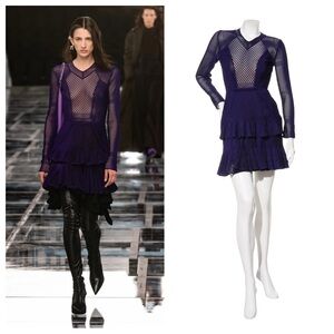 Givenchy FW22 Purple Mesh Ribbed Knit Pleated Runway Dress Size Small