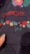 Chic Givenchy scarf featuring bold red flowers. Accented with green and yellow on a black base.