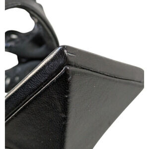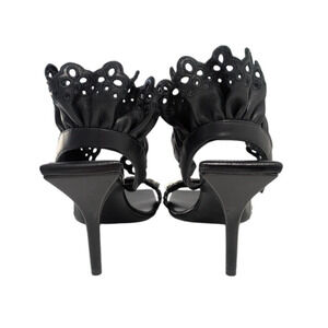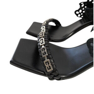 Givenchy G Black Lambskin Chain Ruffle Sandals New EU 37 Square Toe Slingback