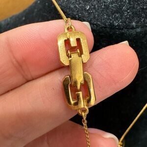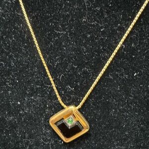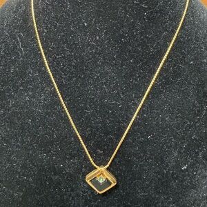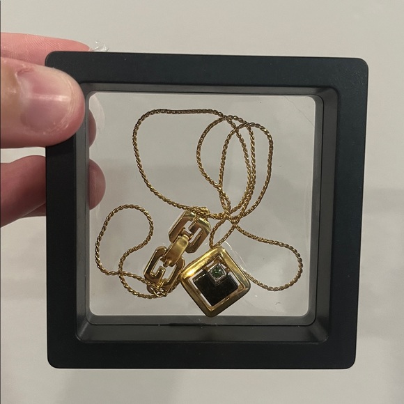 Chic Givenchy necklace. Gold chain with black and green pendant.