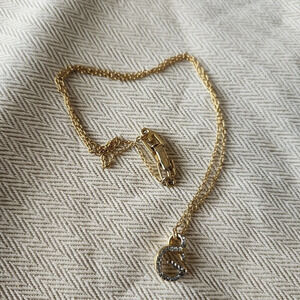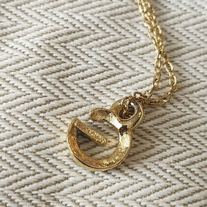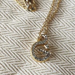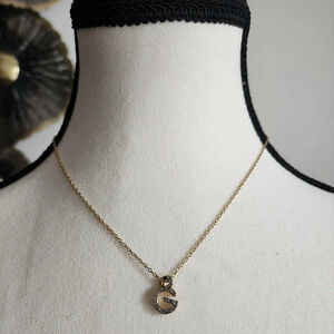 Vintage Givenchy necklace. G pendant lined with rhinestones on a15" gold tone chain. Slight tarnishing at clasp, otherwise great vintage condition.