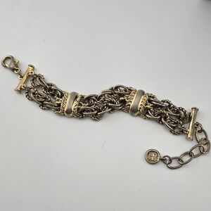 Givenchy Gold Tone Multi-Strand Chain Bracelet 10" Designer Logo Jewelry