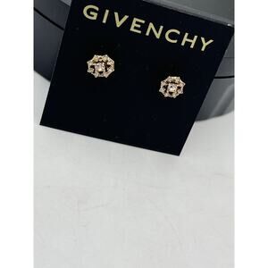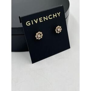 Givenchy Gold Tone Small Round Starburst Stud Pierced Earrings New