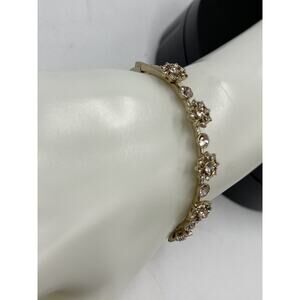Givenchy Gold Tone Starburst Hinged Pink Crystal Flower Bangle Bracelet New