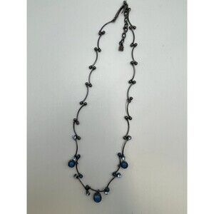 Givenchy Gun Metal Twisted Links Blue Crystal Dainty Necklace