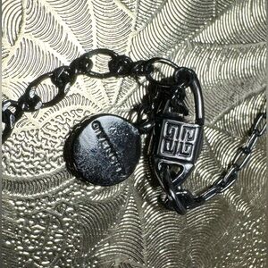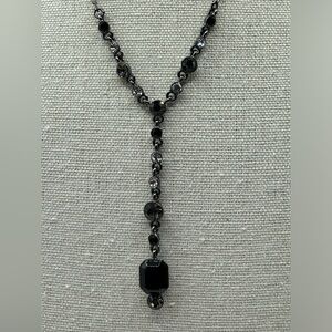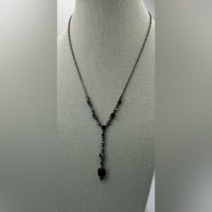 Givenchy Gunmetal Tone Crystal & Stone Lariat Necklace, 16" + 2” ext
