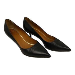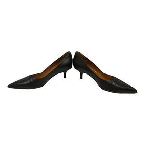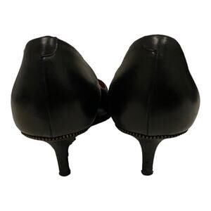 Givenchy Heels 7 Black Leather Pointed Toe Kitten Heel Gold Detailing Designer