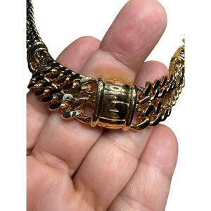 Givenchy Logo Link Gold Tone Vintage Double Chain Rare Chocker Necklace New One