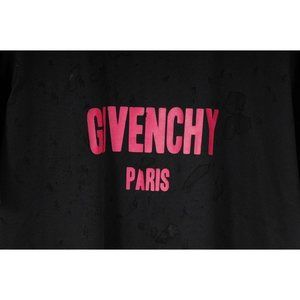 Givenchy Mens Logo T Shirt Large Black Pink Distressed Cotton Barneys NY Collab