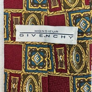 Givenchy Monsieur 100% Silk Neck Tie Mens Red Gold Blue Made In USA