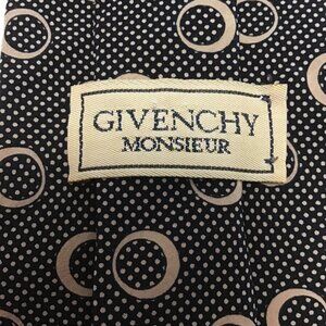 Vintage tie by Givenchy Monsieur. It is dark brown with tan circle designs in it. It has the old original price tag still on it. Like new condition.