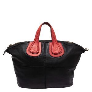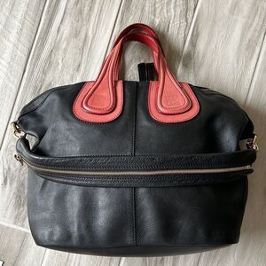 Givenchy Nightingale Handbag Black with Red Handles. Used good condition. 14.5 inches long on the bottom, 20 inches long on the top zipper side, 11.5 inches tall.