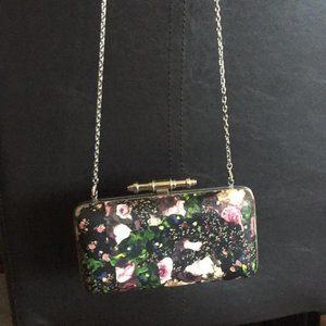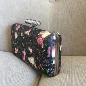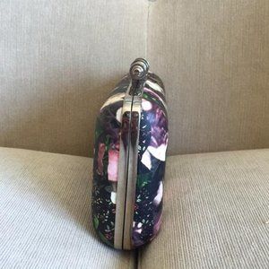 Multicolored printed leather (Lamb), Optional silver chain shoulder strap (45 3/4" long), Fully lined in black leather,Silver clasp fastening