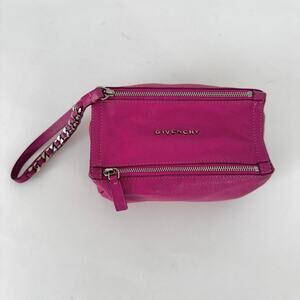 Givenchy Pandora Leather Wristlet Sugar Goatskin Fuchsia Hot Pink