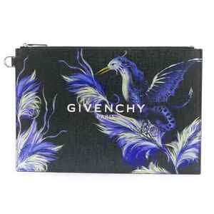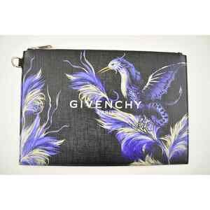 Givenchy Paris Black White Logo Purple Printed Phoenix Bird Zip Pouch Clutch Bag