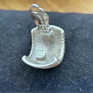 Givenchy Paris New York Earrings Ribbed Half Hoop Silver Tone Chunky Clip On Vtg
