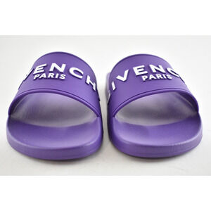 Givenchy Paris Purple Rubber White Logo Slide On Pool Sandal Flip Flop Flat 36