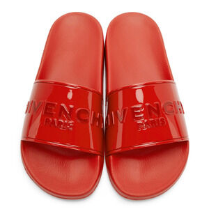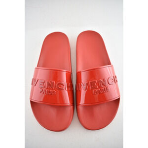 Givenchy Paris Red Rubber Logo Embossed Slide On Pool Sandal Flip Flop Flat 41