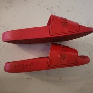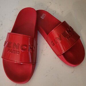 Givenchy Paris, Red Slide Flat Sandals, Authentic