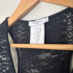 Givenchy Paris Slim Fit Tank Top-Mesh Textured Floral Lace-Black-Women's Large