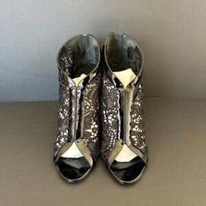 Givenchy Patent Embroidered Peep Toe Ankle Booties Heels Size 37.5