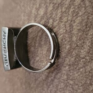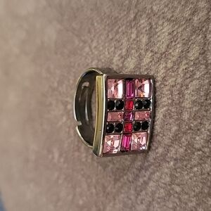 Givenchy Pink Crystal Rectangle Gunmetal Atomic Modernist Adjustable Ring