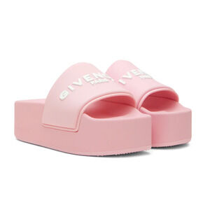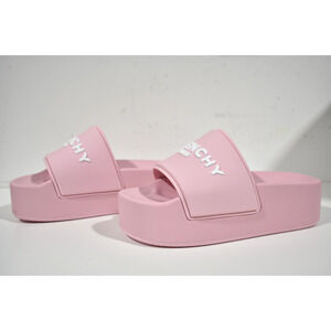 Givenchy Pink Platform Rubber White Logo Slide On Pool Sandal Flip Flop Flat 40